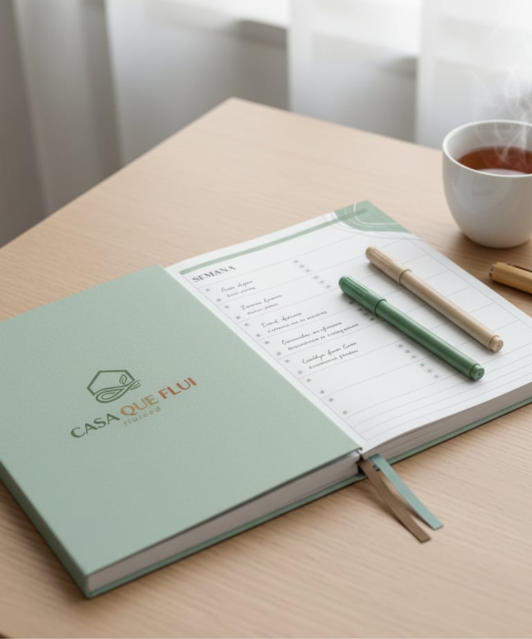 A Casa Que Flui mudou minha rotina: agora sinto que a organização da casa é leve e realmente possível no meu dia a dia.